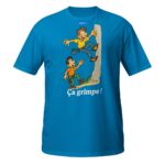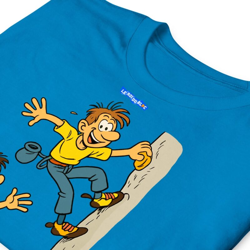 🎁 À offrir ou à porter, pour petits et grands grimpeurs qui ne se prennent pas au sérieux. Style BD rétro, clin d’œil complice, et bonne humeur garantie en paroi comme en bas du bloc.