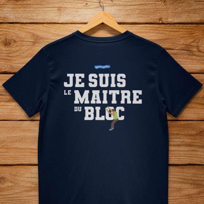 Offrez un cadeau escalade homme ou femme qui sort du lot : le t-shirt grimpeur Je suis le maître du bloc. Original, stylé et utile, il plaît autant en salle qu’au quotidien. Un clin d’œil parfait pour passionnés de bloc.